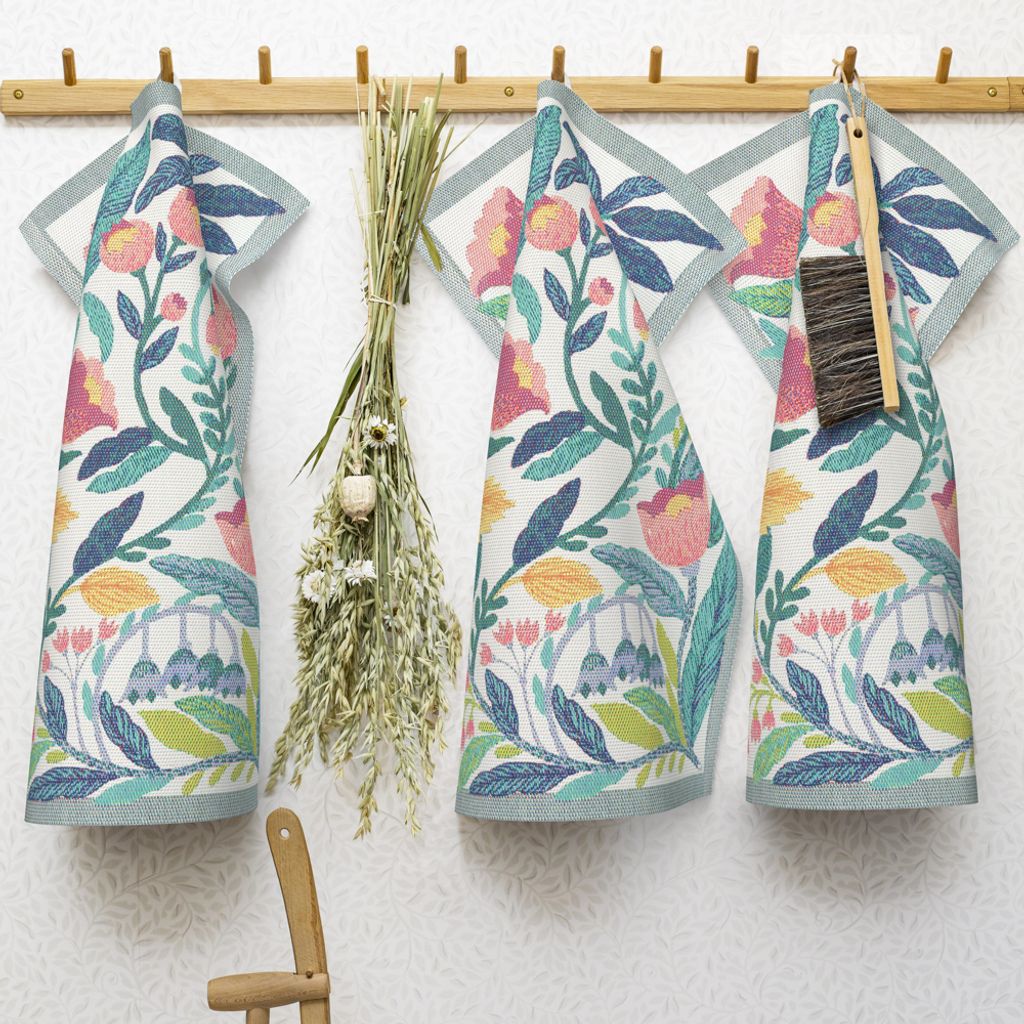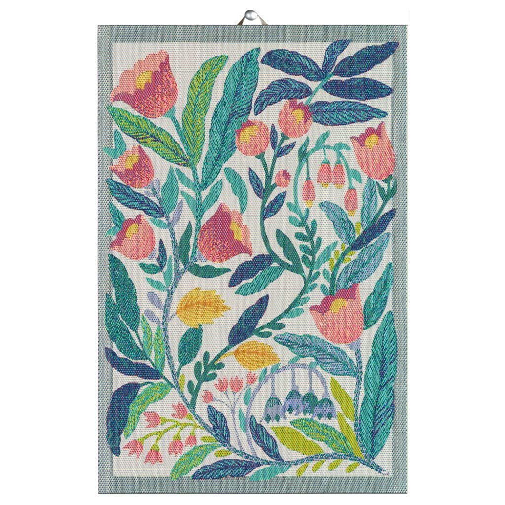 Denna svenskdesignade kökshandduk, skapad med GOTS-certifierad ekologisk bomull, pryds av ett frodigt blomstermönster som tar med naturens lugn in i ditt hem. Den kombinerar hållbarhet med tidlös estetik och blir en omtänksam detalj i din köksinredning.