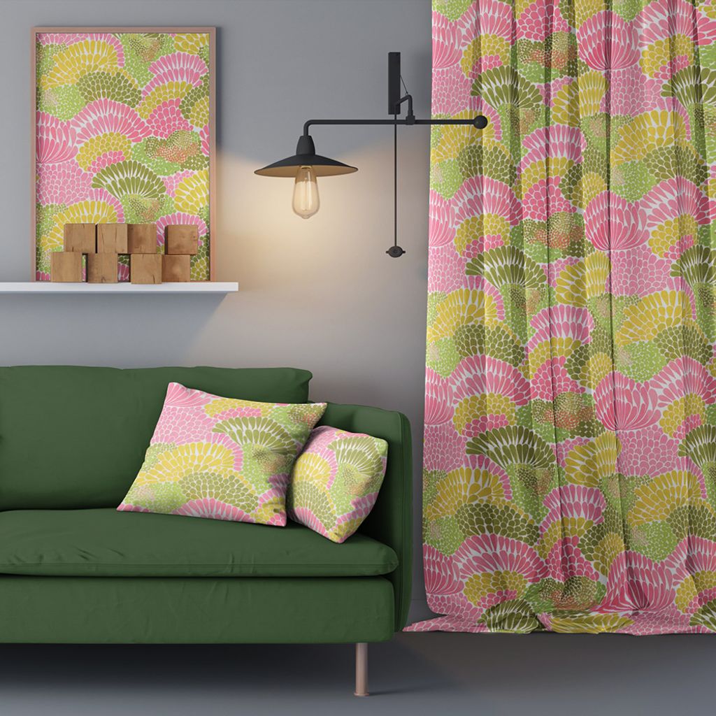 Tyget gör sig bra till gardiner, kuddar, duk , väskor m.m.Du kan även göra enklare omklädnad av stolar eller en egen tygtavla.
