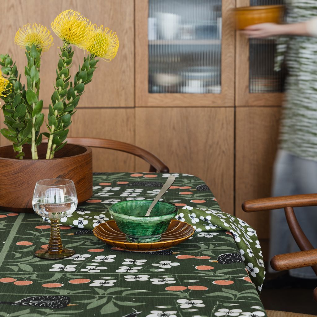 Körsbärsträdgården grön gardiner är en del av den klassiska textilkollektionen designad av Marianne Westman, en av Sveriges mest älskade formgivare. Med sin förmåga att förena naturens skönhet med ett stilrent formspråk har hon skapat ett mönster som känns både traditionellt och modernt på samma gång.