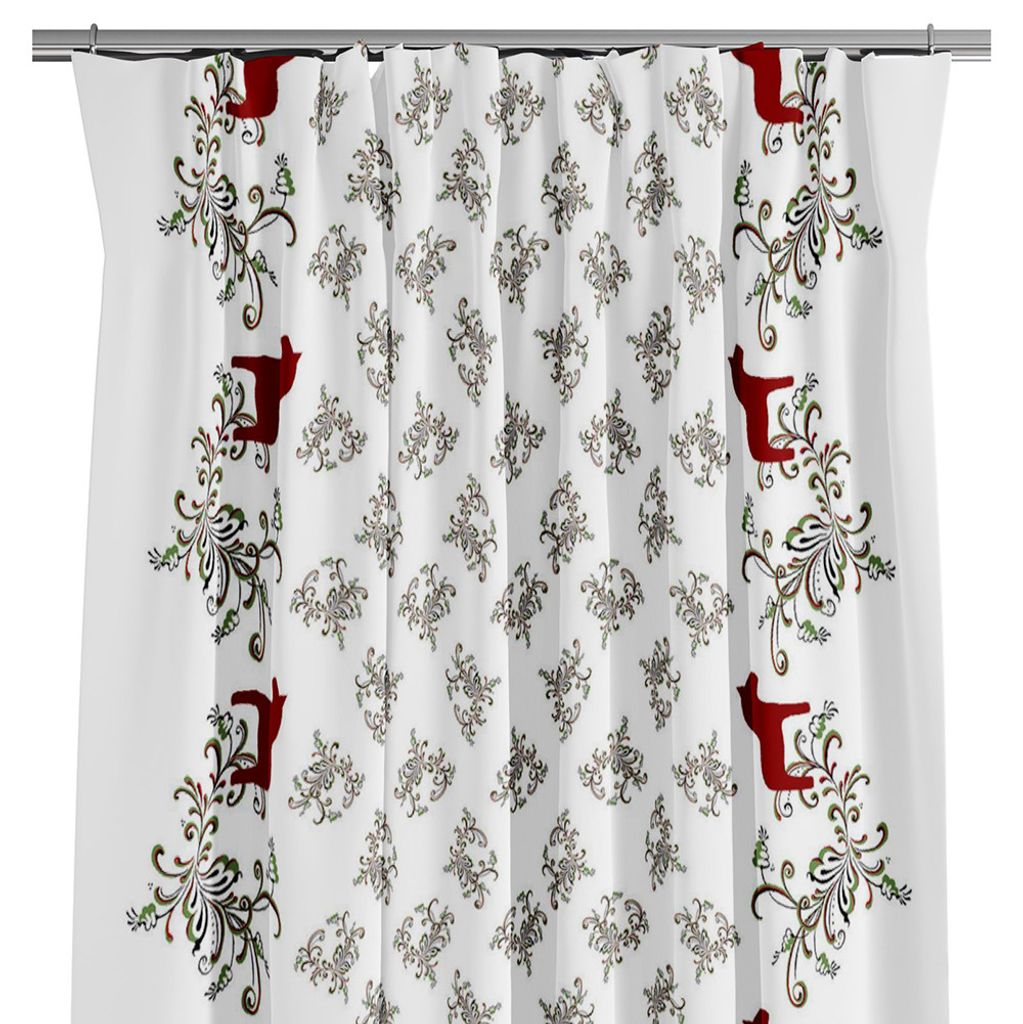Beskrivning av Kurbits bård röd-grön tyg med dalahästar