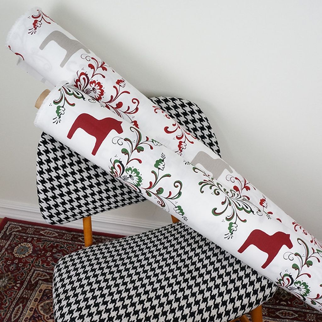Bomullstyg med kurbits och dalahästar
