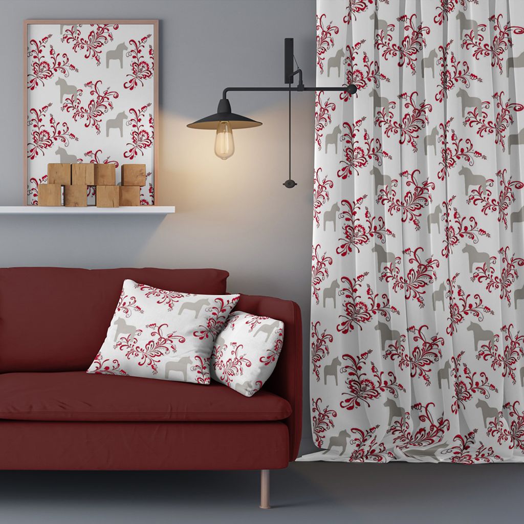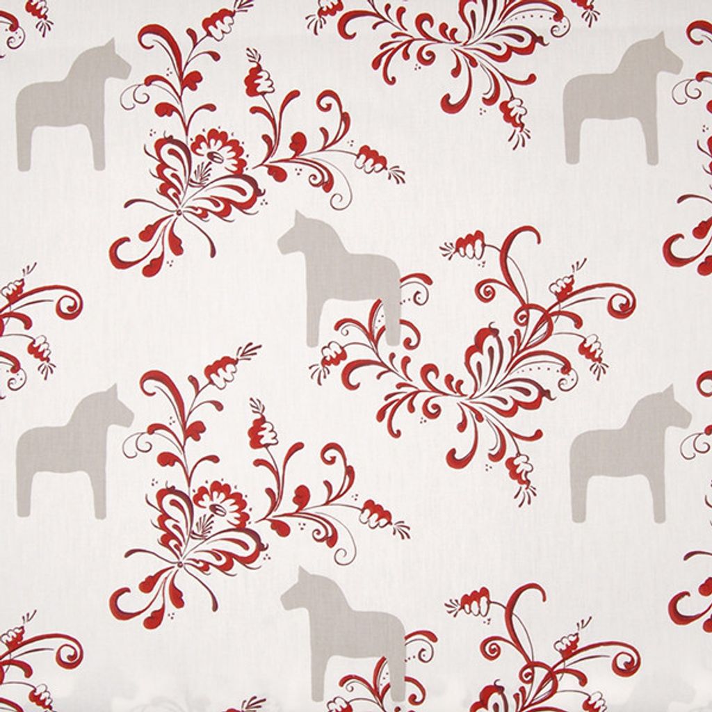 Kurbits beige-röd tyg med dalahästar