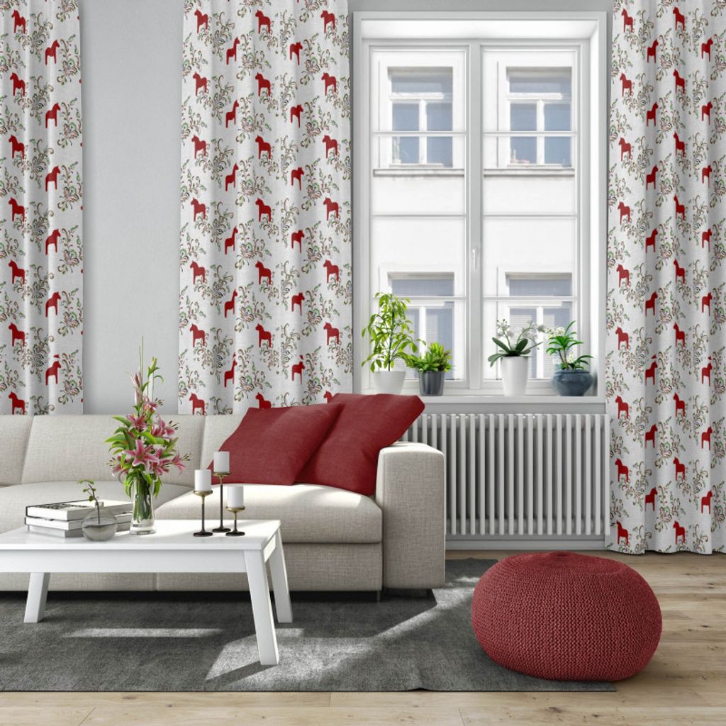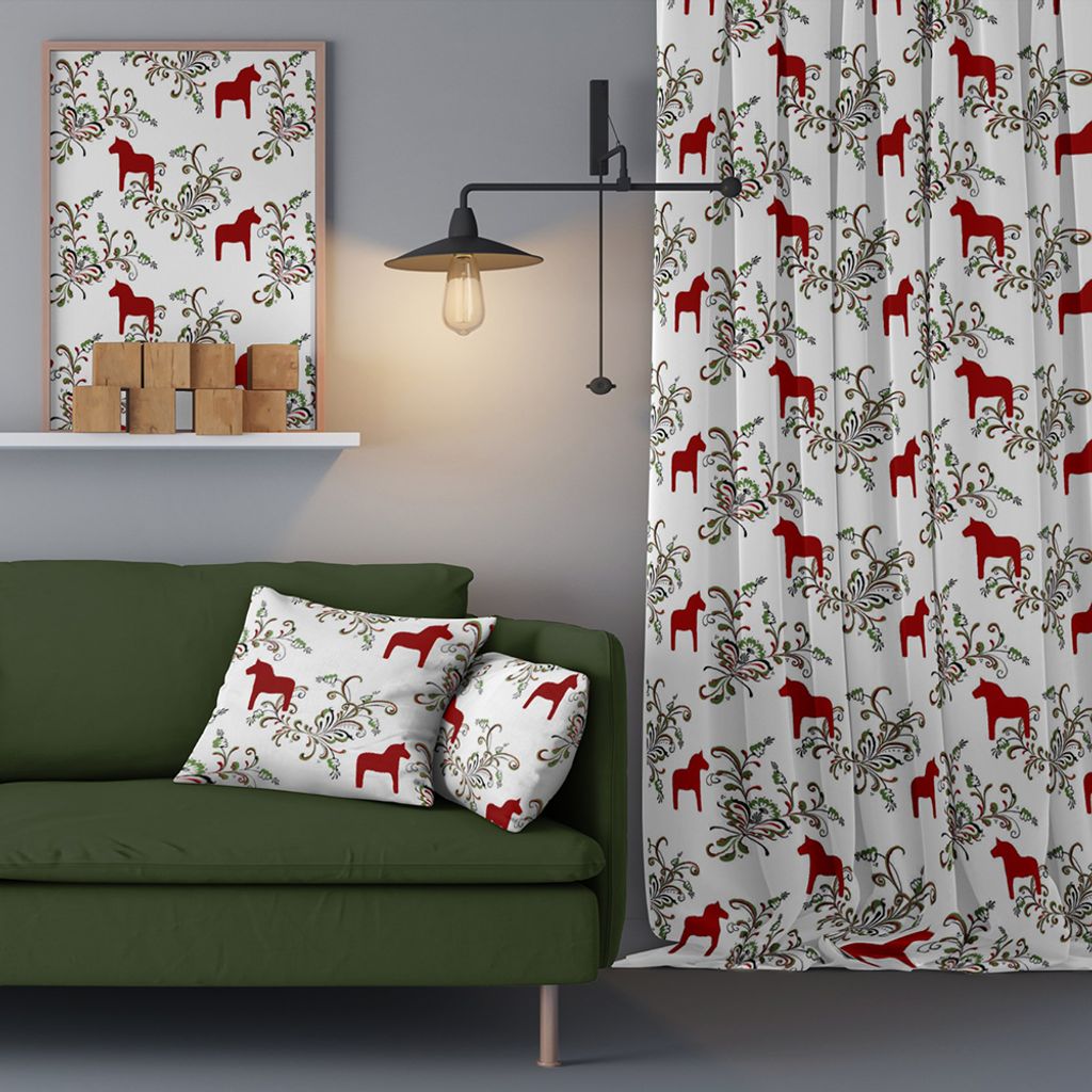 Kurbits röd-grön tyg med dalahästar