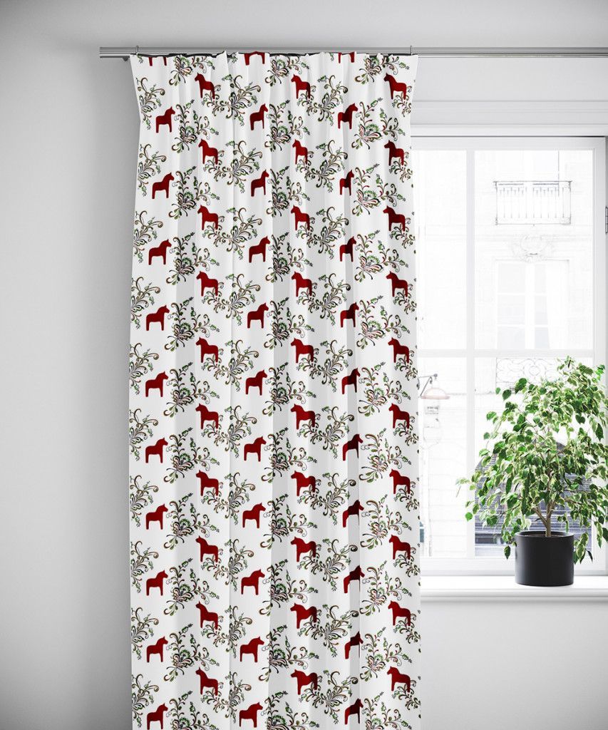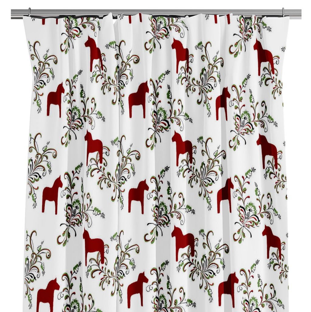 Kurbits röd-grön gardiner med dalahästar