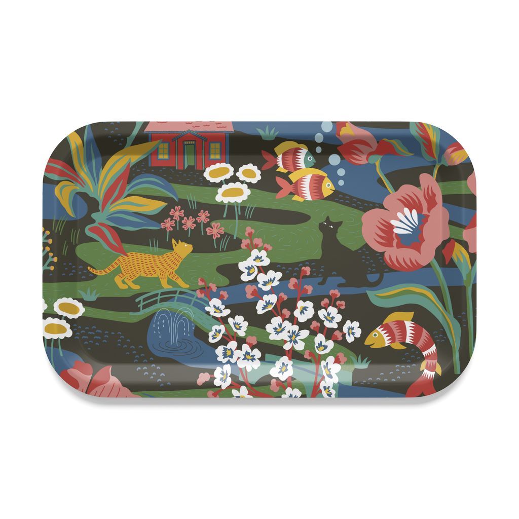 Landet Bubblar Bricka svart-multi – Svensktillverkad med lekfullt mönster