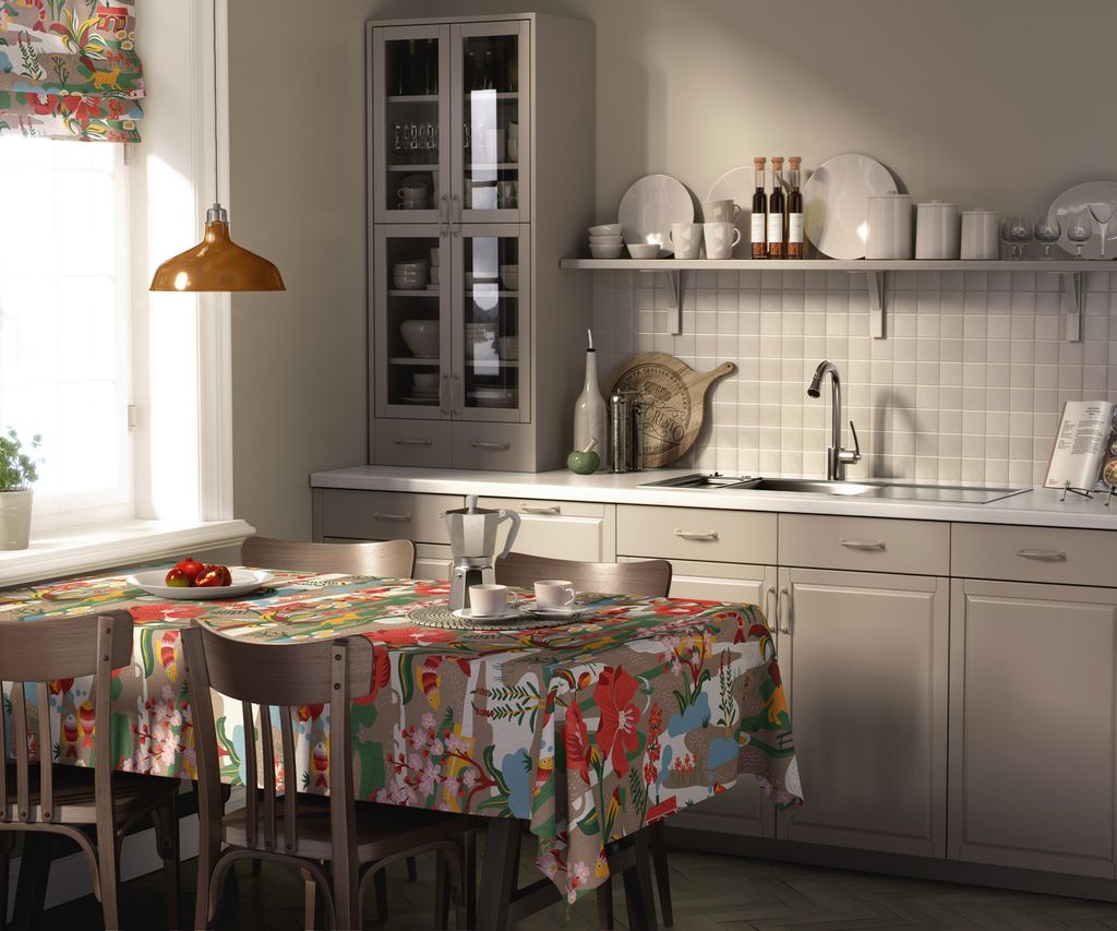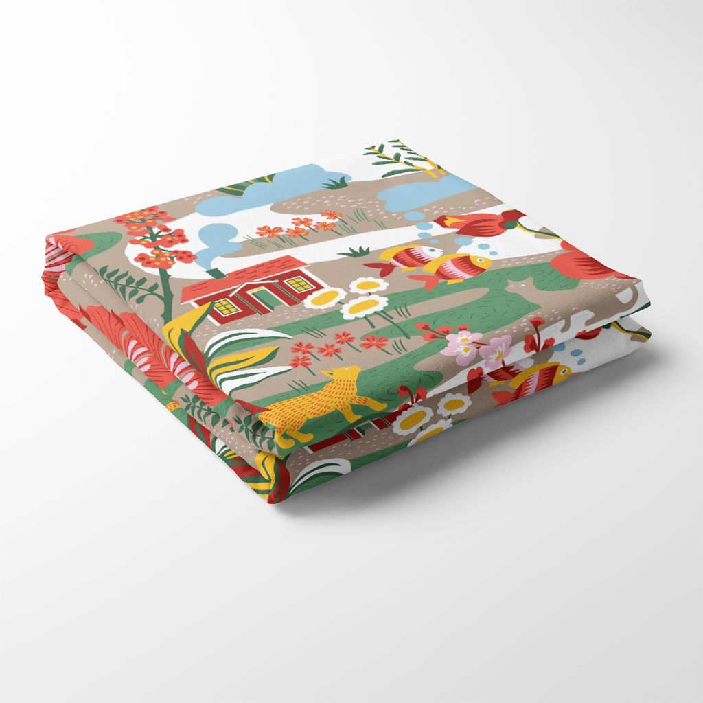 Fantasifull och färgsprakande bordsduk med ett lekfullt motiv inspirerat av svensk sommaridyll. Perfekt för både vardag och fest! Duken finns i 4 olika storlekar.