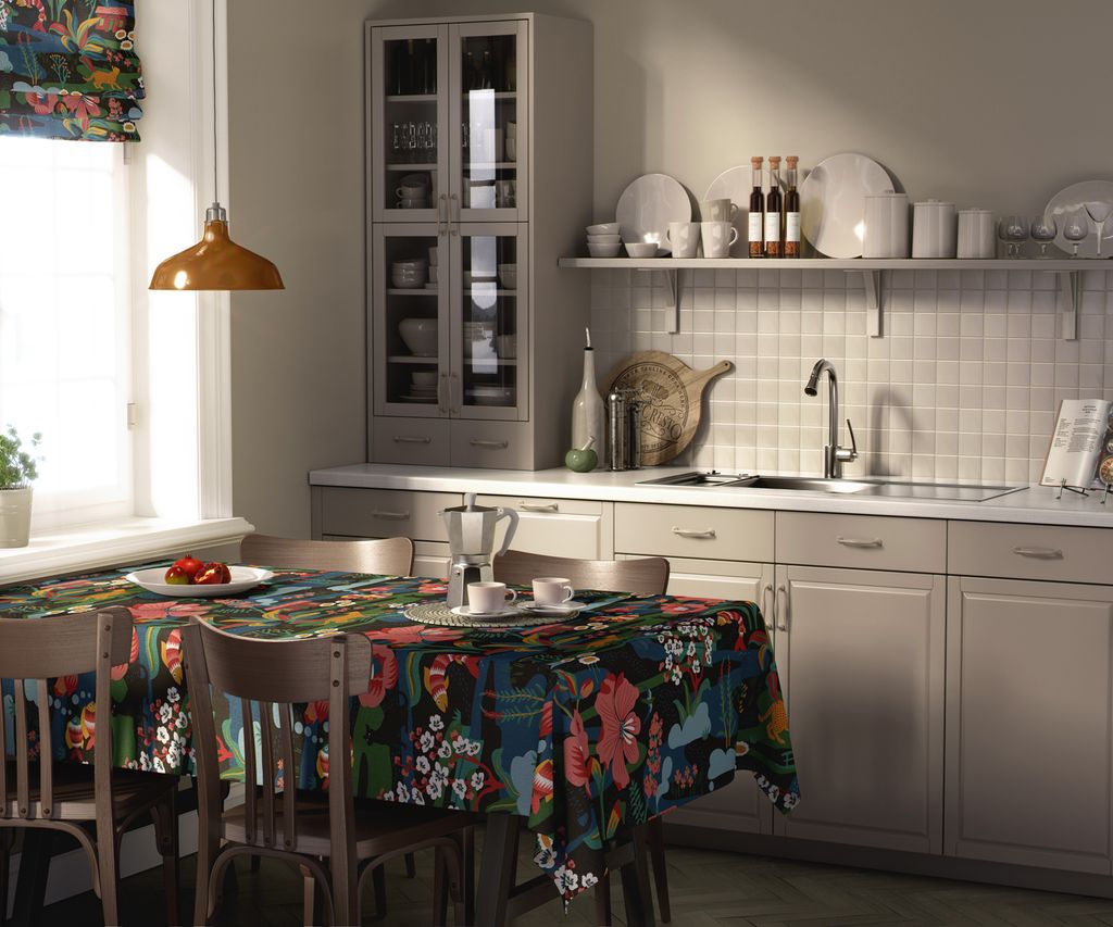 Låt bordet bli en konstnärlig mittpunkt med Landet Bubblar svart-multi bordsduk. Mönstret bjuder på en färgrik tolkning av lantliga idyller, där traditionella stugor, blommor, djur och skog möts i en harmonisk och livfull komposition. Den svarta botten skapar en vacker kontrast till de klara och livliga färgerna, vilket gör duken lika effektfull som dekorativ. Perfekt för både vardag och festliga tillfällen där du vill addera en känsla av glädje och lekfullhet till din dukning.