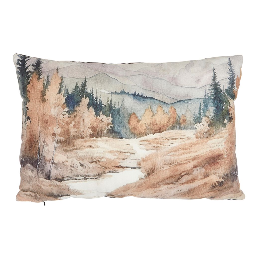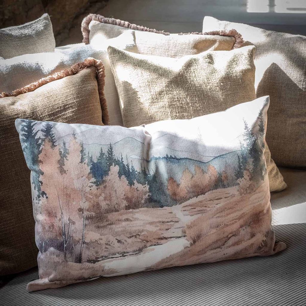 Landscape kuddfodral har ett måleriskt naturmotiv i dämpade, höstiga toner – en dekorativ detalj som tillför lugn och värme till soffan eller sängen.