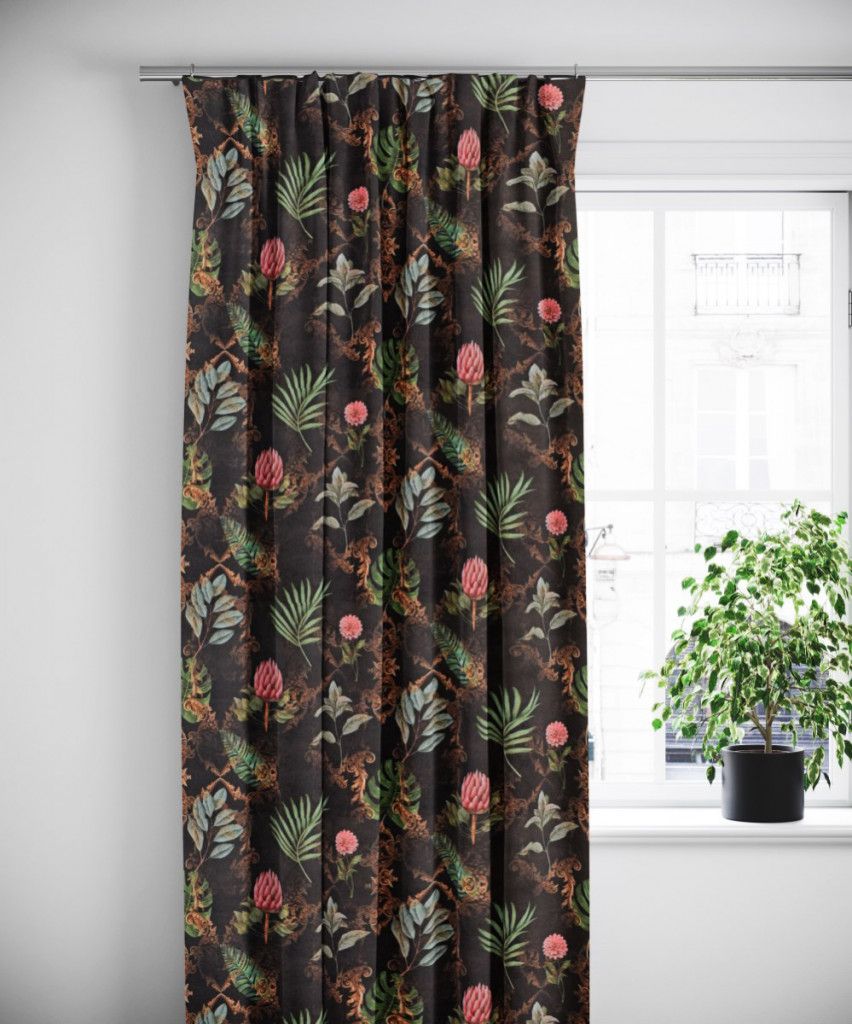 Beskrivning av Leaf baroque sammetsgardiner