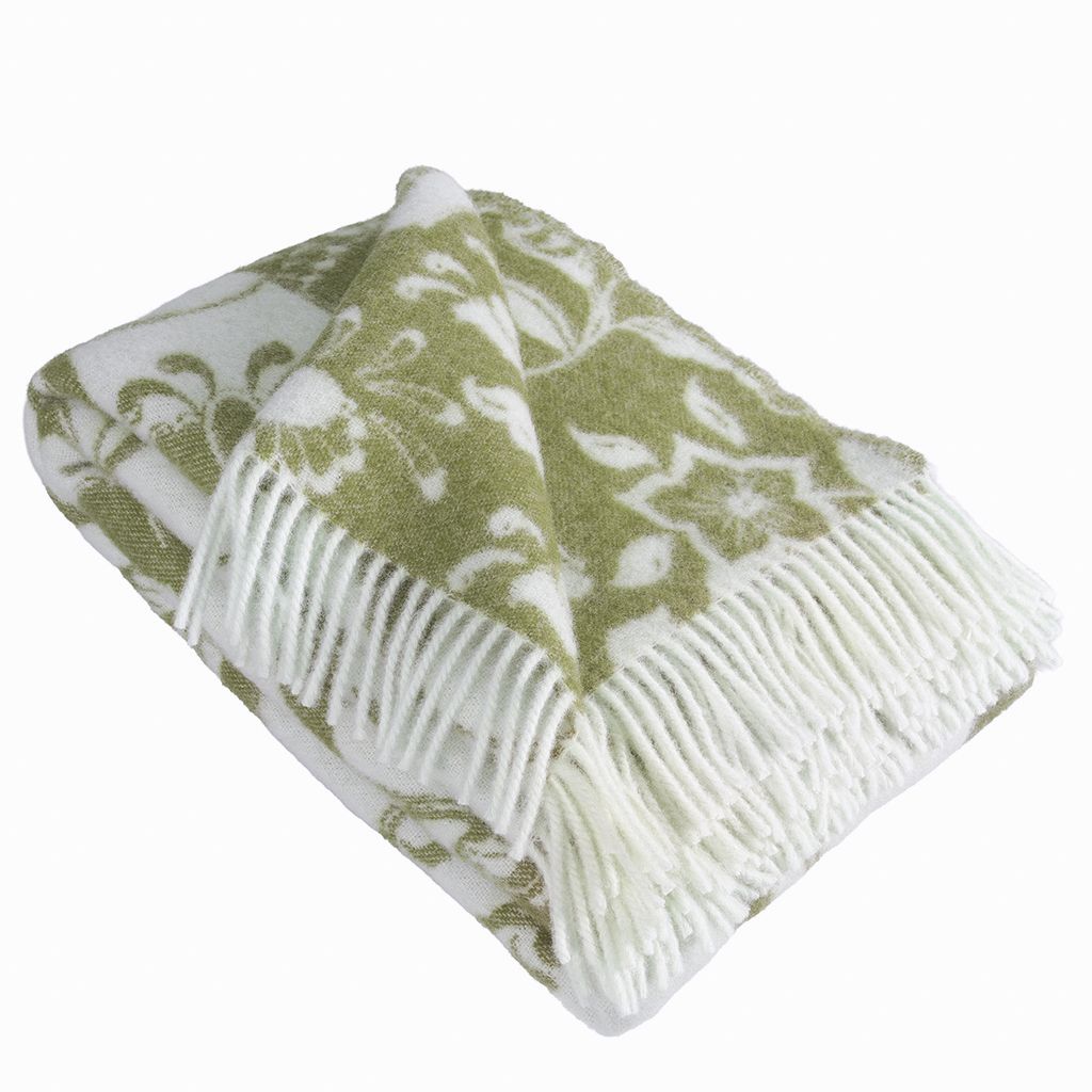 Den gröna färgställningen ger pläden ett lugnt och harmoniskt uttryck som passar perfekt i både klassiska och moderna hem. Mot den ljusa botten framträder mönstret tydligt och skapar en fin balans mellan tradition och samtida design.