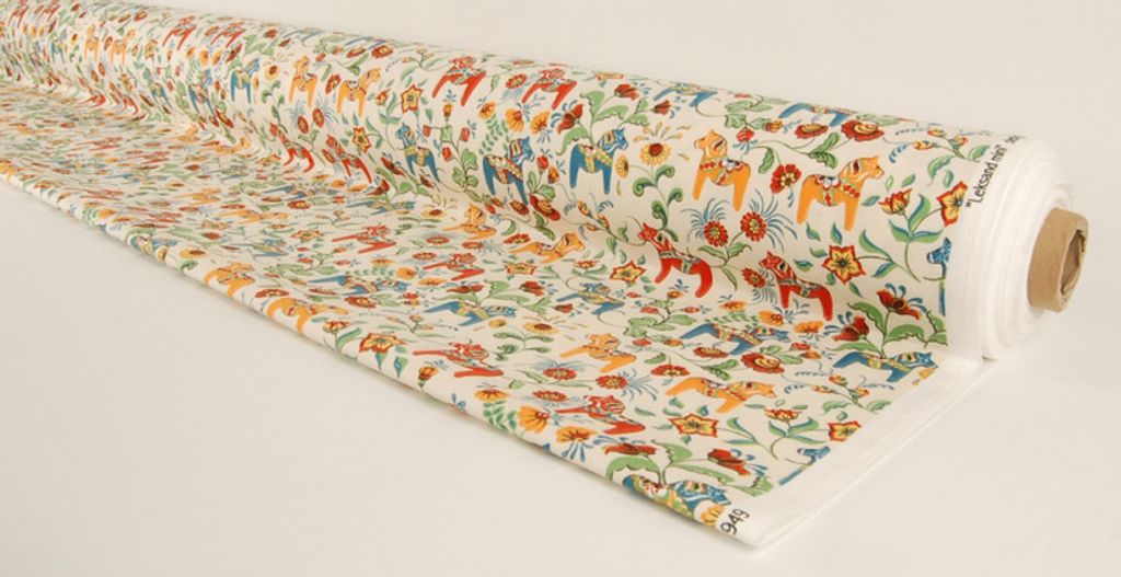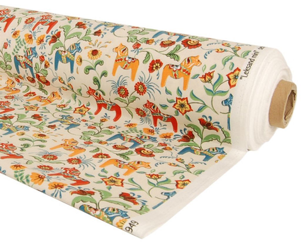 Leksand mini natur tyg med traditionellt dalahästtryck