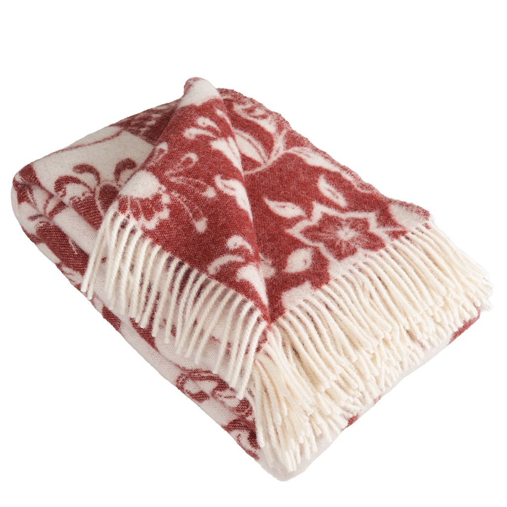 Leksand röd ullpläd är en varm och klassisk pläd i 100 % ull med traditionellt dalahästmotiv i en djup röd färg. Designad av Carola Bengtsson Malmström – en tidlös favorit för ett ombonat hem.