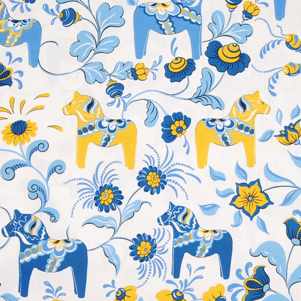 Bomullstyg med dalahästar