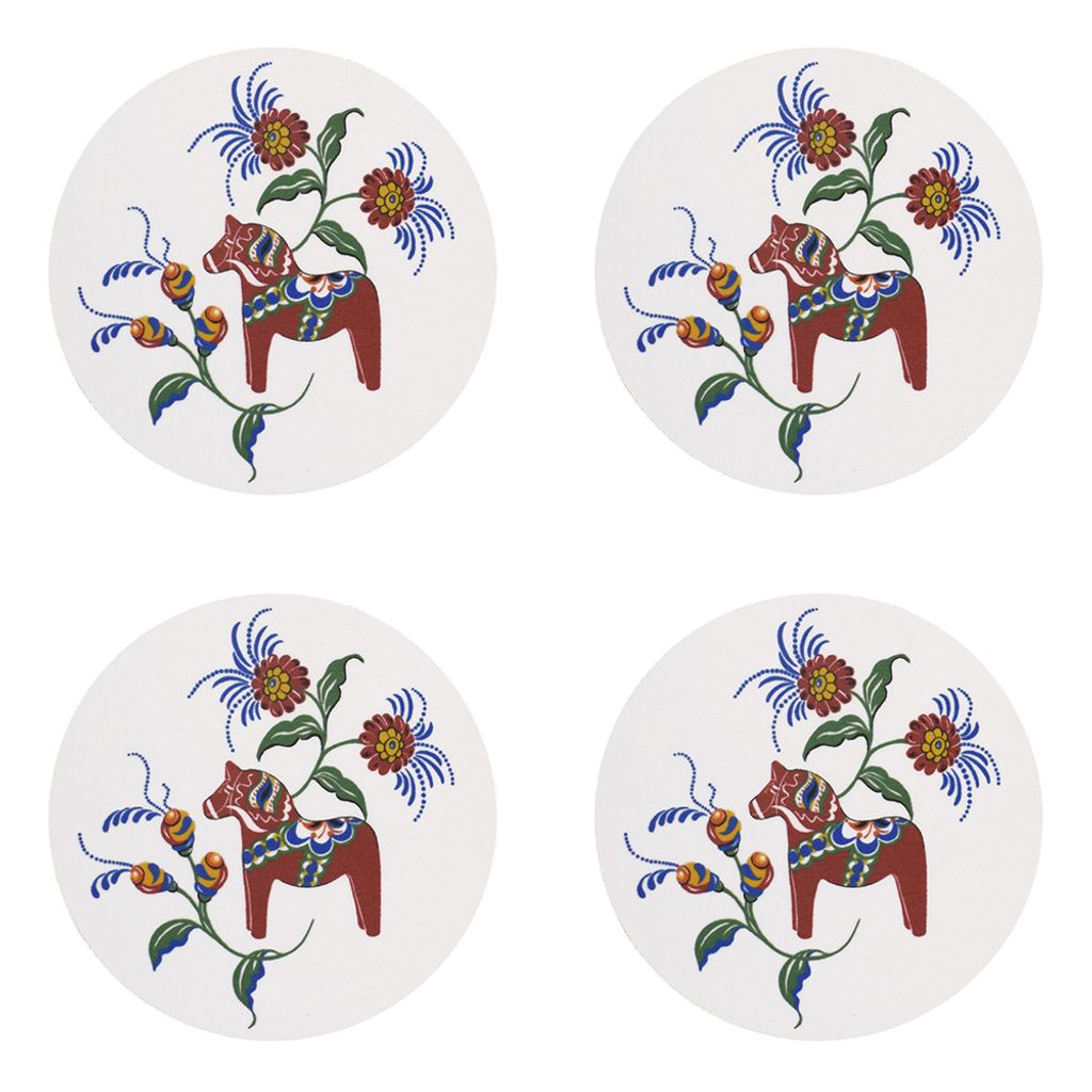 Leksand underlägg vit-röd 4-pack med traditionellt dalahästmönster