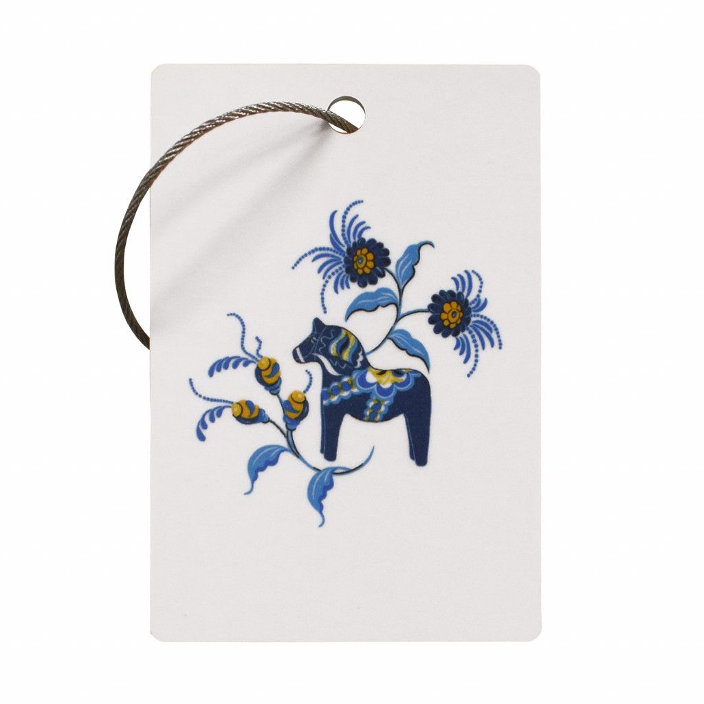 Leksand väsktagg vit-blå med traditionellt dalahästmönster