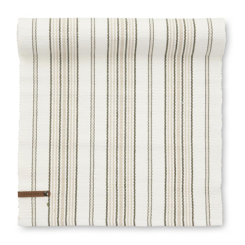 Linara beige är en tidlös bordslöpare som kombinerar ett klassiskt randigt mönster med en varm och naturlig färgskala. De diskreta ränderna i beige och mörkare nyanser skapar ett harmoniskt uttryck som ger bordet liv utan att ta över dukningen. Resultatet är en balanserad och stilren detalj som lyfter helhetsintrycket på ett subtilt sätt.
