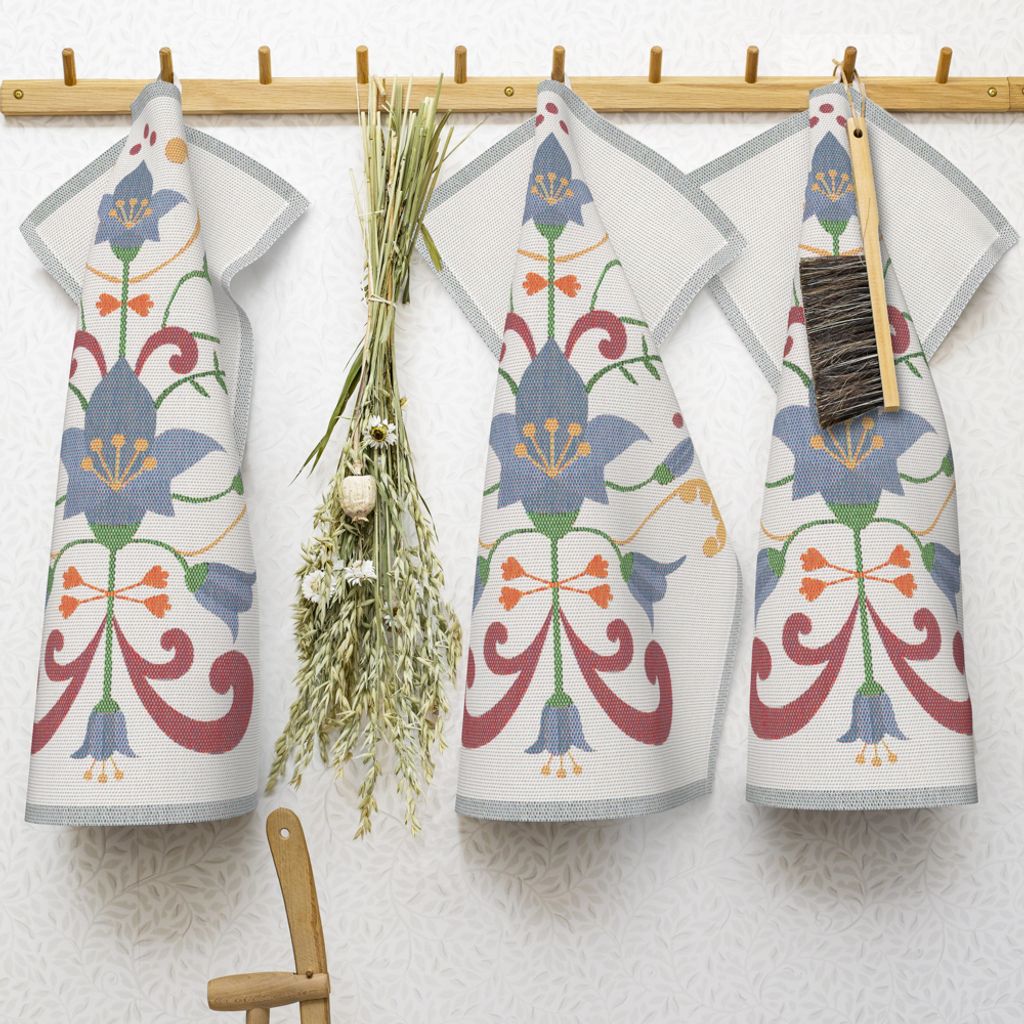 Vacker handduk, en symbol för de svenska folkhemmet. Tillverkad av 100% ekologisk bomull, är varje handduk en miljömässig och socialt ansvarig produkt, erkänd genom GOTS-certifieringen.