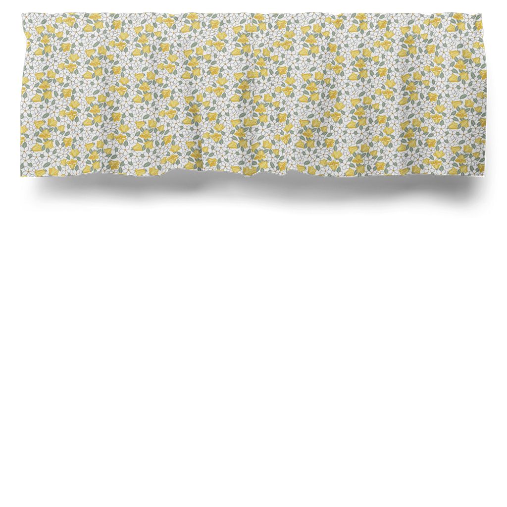 Gardinkappa på metervara med små söta gula blommor.