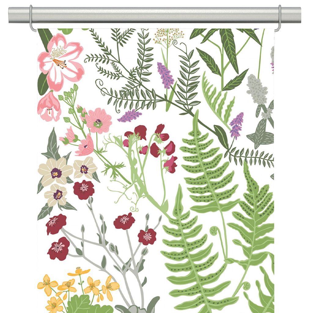 Designen bjuder på en rik flora av nordiska sommarblommor, örter och bladverk som klättrar uppåt längs hela panelen, vilket skapar en känsla av att naturen har flyttat in. De detaljrika illustrationerna ger ett levande och fräscht uttryck, som samtidigt är harmoniskt tack vare den vita botten.