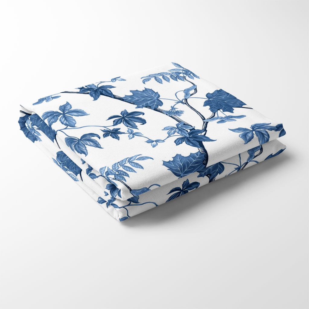 Bordsduk med härligt grönskande bladmönster med härligt blåa blad och kvistar.