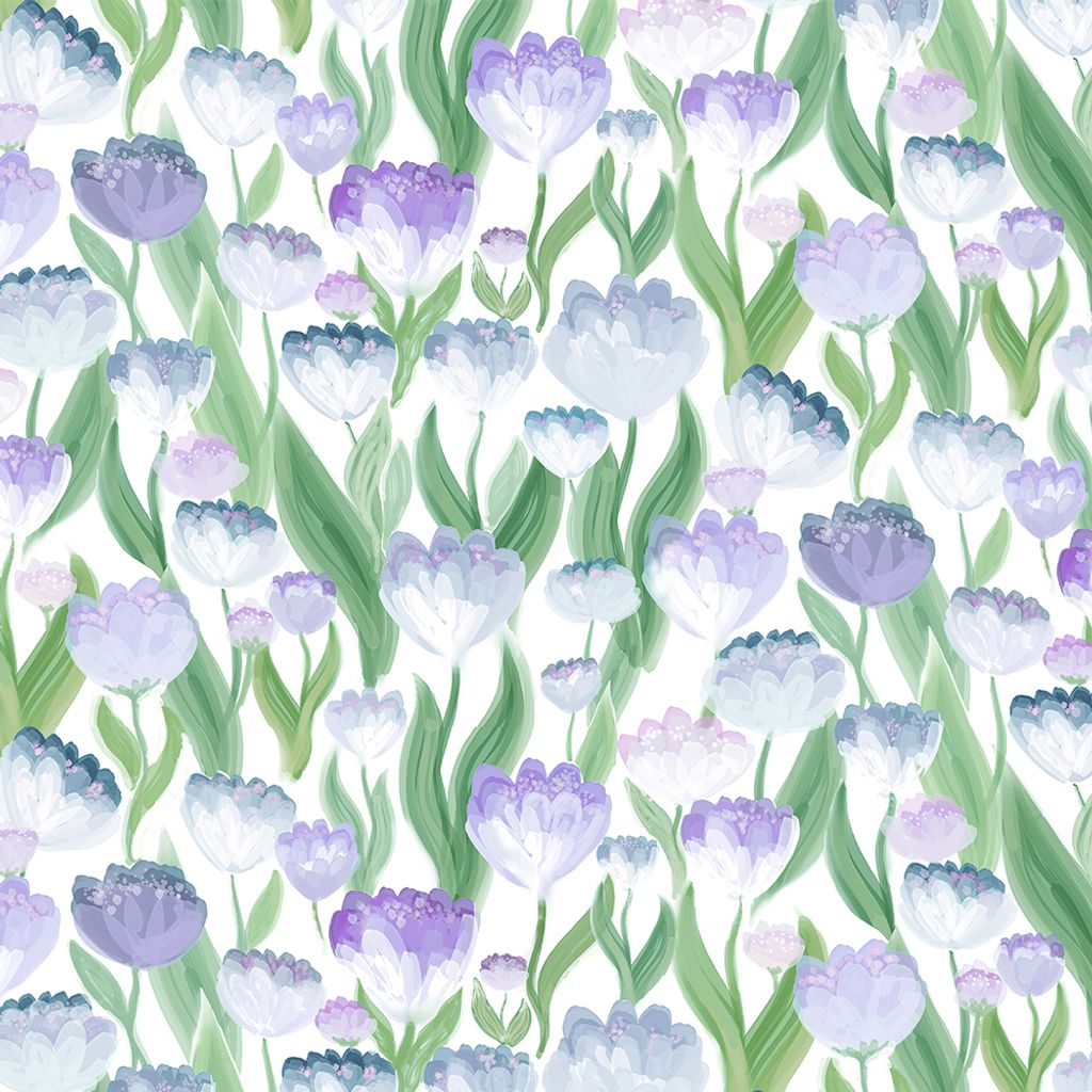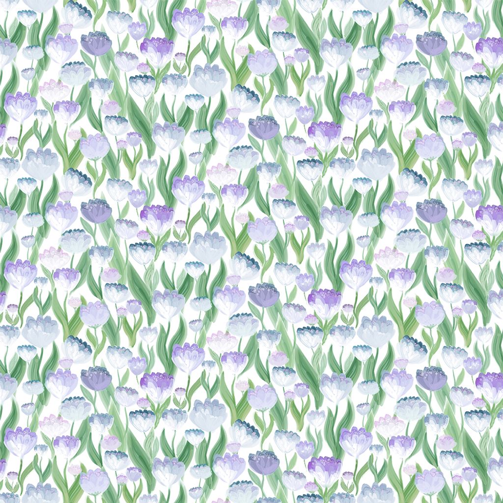 Ljuvligt blå är ett blommigt tyg med ett lätt och drömskt uttryck. Mönstret består av tätt placerade blommor i nyanser av blått, lavendel och vitt, tillsammans med mjukt gröna blad som skapar ett levande men balanserat helhetsintryck. Den ljusa botten låter färgerna komma fram utan att ta över rummet.