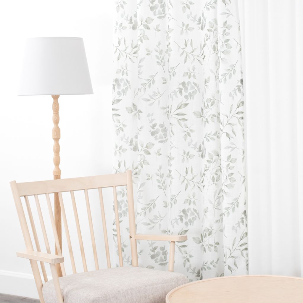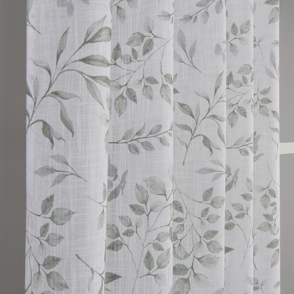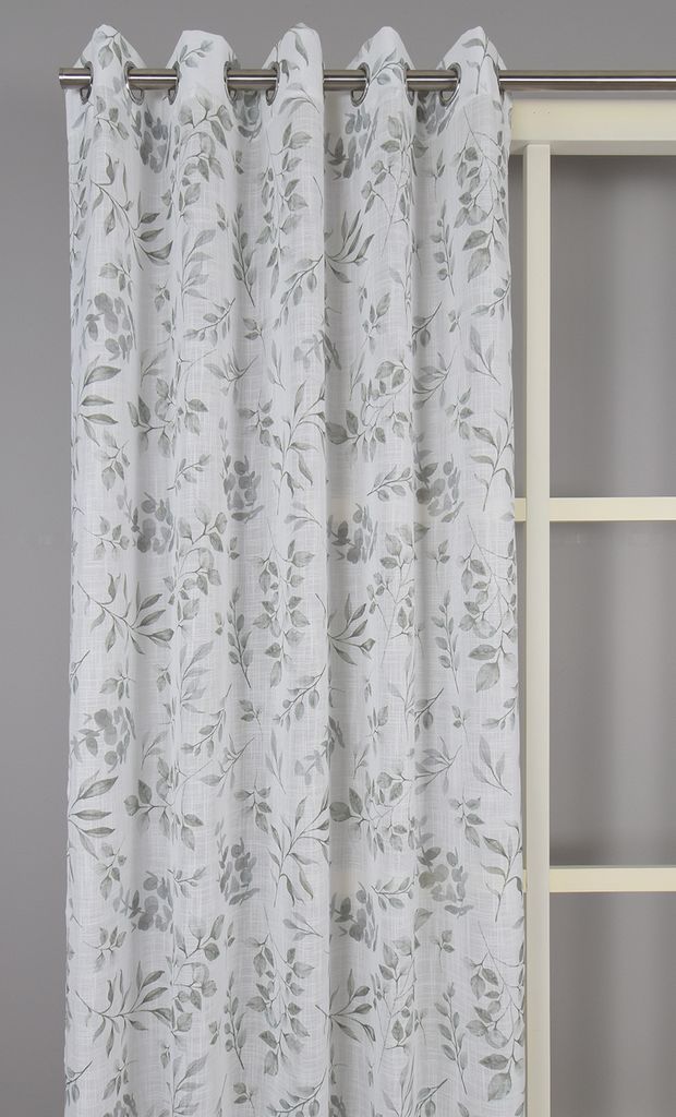 Lätta och luftiga gardiner med stilrent lövmönster. Öljetterna gör dem enkla att hänga upp och ger ett vackert fall.