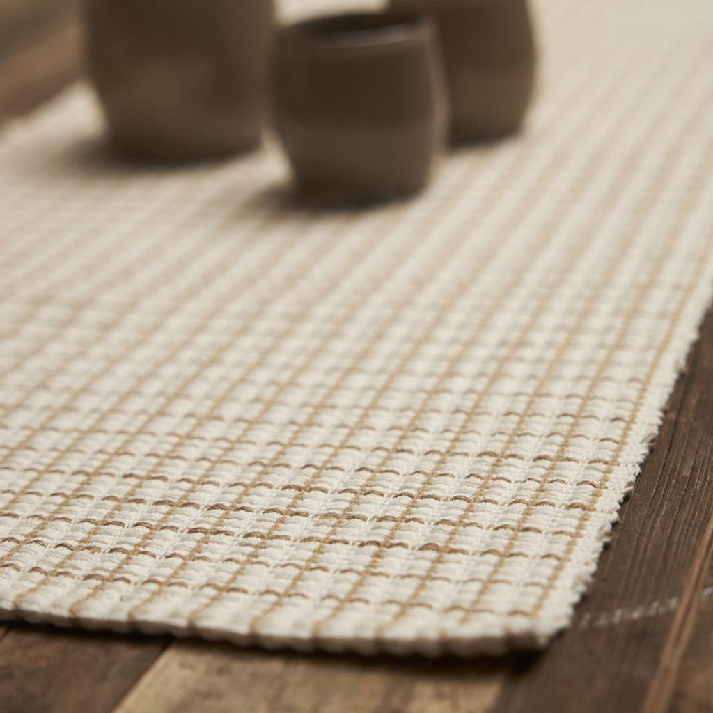 Löpare i offwhite med jute trådar vacker rustik design med måtten 40x140cm. Vacker till dukning vid speciella tillfällen men även till vardags. Tillverkat i bomull och Jute.