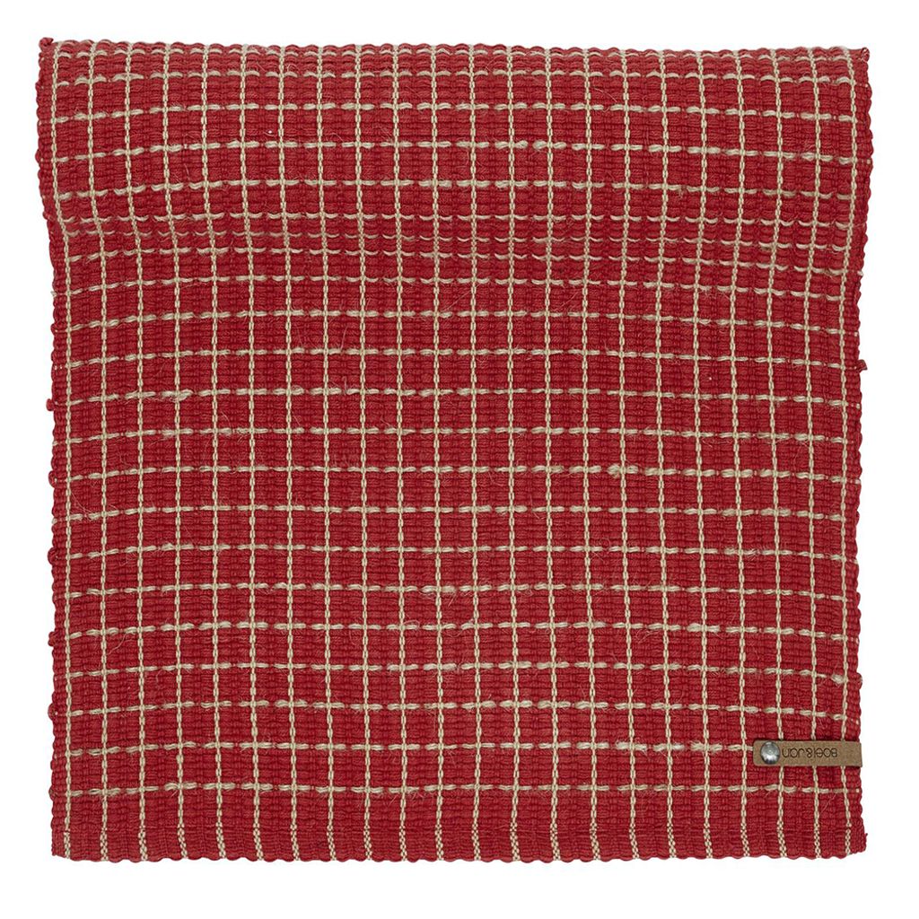 Löpare i röd med jute trådar vacker rustik design med måtten 40x140cm.