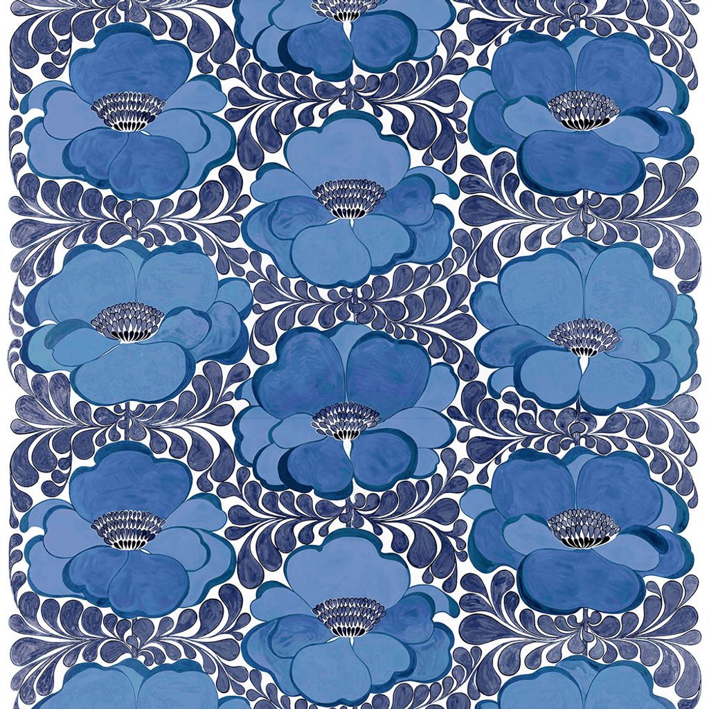 Stor mönstrat tyg med blåa blommor