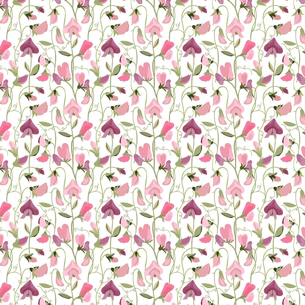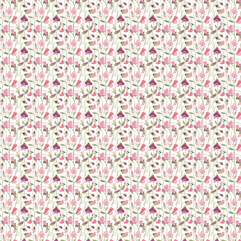 Beskrivning av Luktärt rosa – blommigt tyg med klättrande luktärter