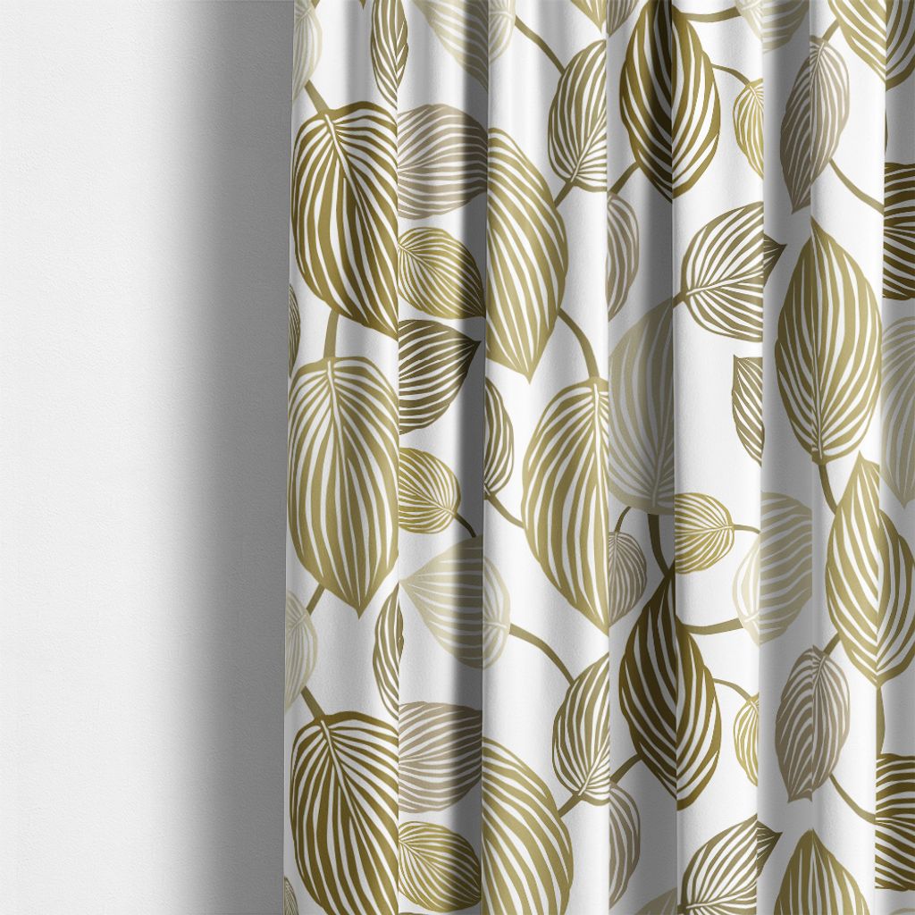 Lyckans Blad är ett dekorativt tyg med blad i olivgröna och mjuka beigea toner. Ett harmoniskt mönster som ger rummet ett lugnt, naturinspirerat uttryck och passar lika fint till gardiner som till inredningsdetaljer.