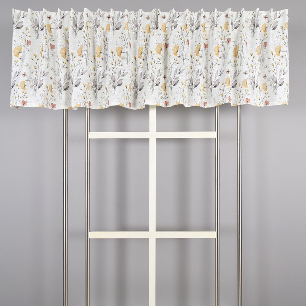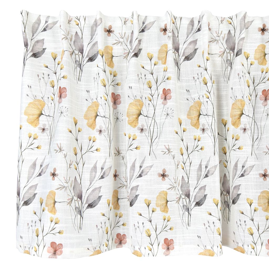 Lykke gardinkappa är en vacker detalj som ger ditt hem en känsla av vår och natur. Med ett mjukt blommönster i ljusa gula och beige toner skapar denna gardinkappa en inbjudande atmosfär i kök, hall eller andra mindre fönster.
