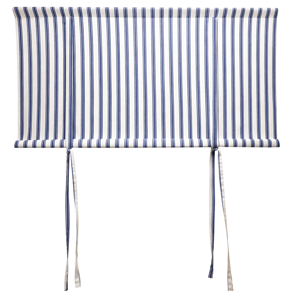 Beskrivning av Madicken blå hissgardin – klassisk randig hissgardin