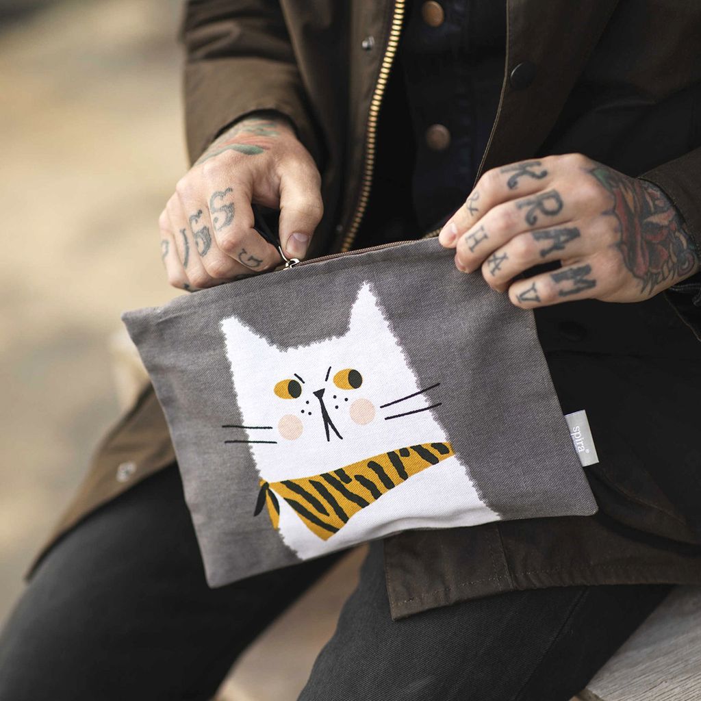 Måns necessär från Spira of Sweden är både praktisk och personlig – ett litet konstverk i tyg. Med sitt uttrycksfulla kattmotiv är den perfekt för dig som uppskattar karaktär och funktion i ett.