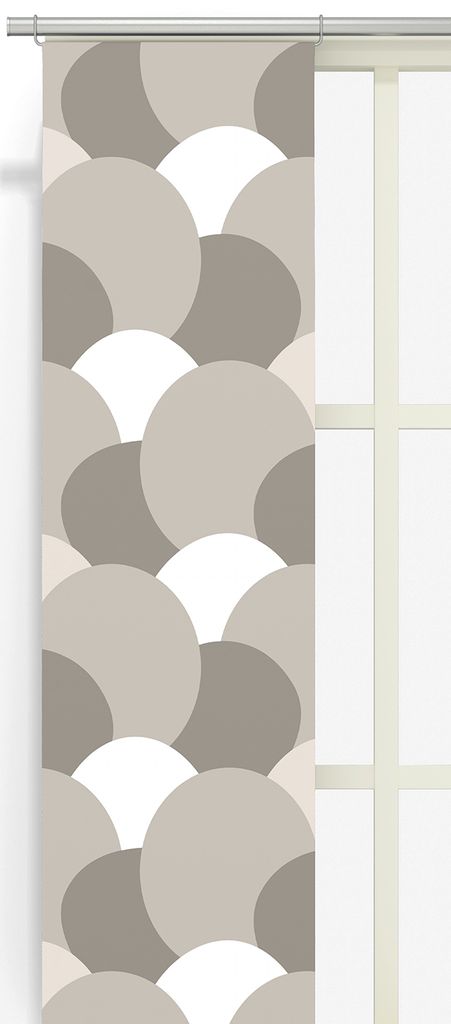 Månvågen beige Panelgardiner med ett grafiskt mönster med ett lugnt och harmoniskt uttryck. Vågmönstret skapar en lekfull men samtidigt balanserad känsla i hemmet – perfekt för dig som gillar ett modernt och stilrent uttryck i jordnära färger.