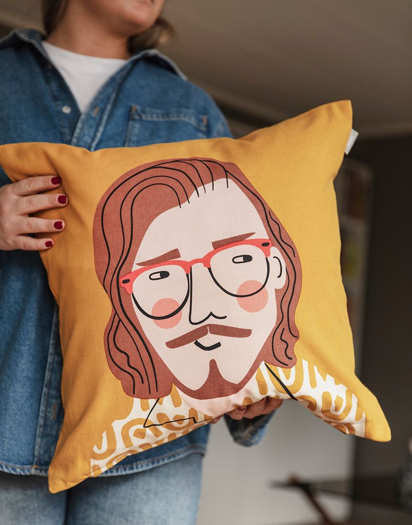 Tillverkat i slitstark bomull och handtryckt med stor omsorg är varje exemplar unikt – precis som Matteo själv. Kombinera honom gärna med andra kompiskuddar från Spira för en livfull, personlig och humoristisk soffhörna.