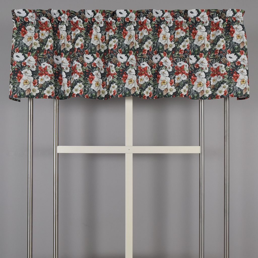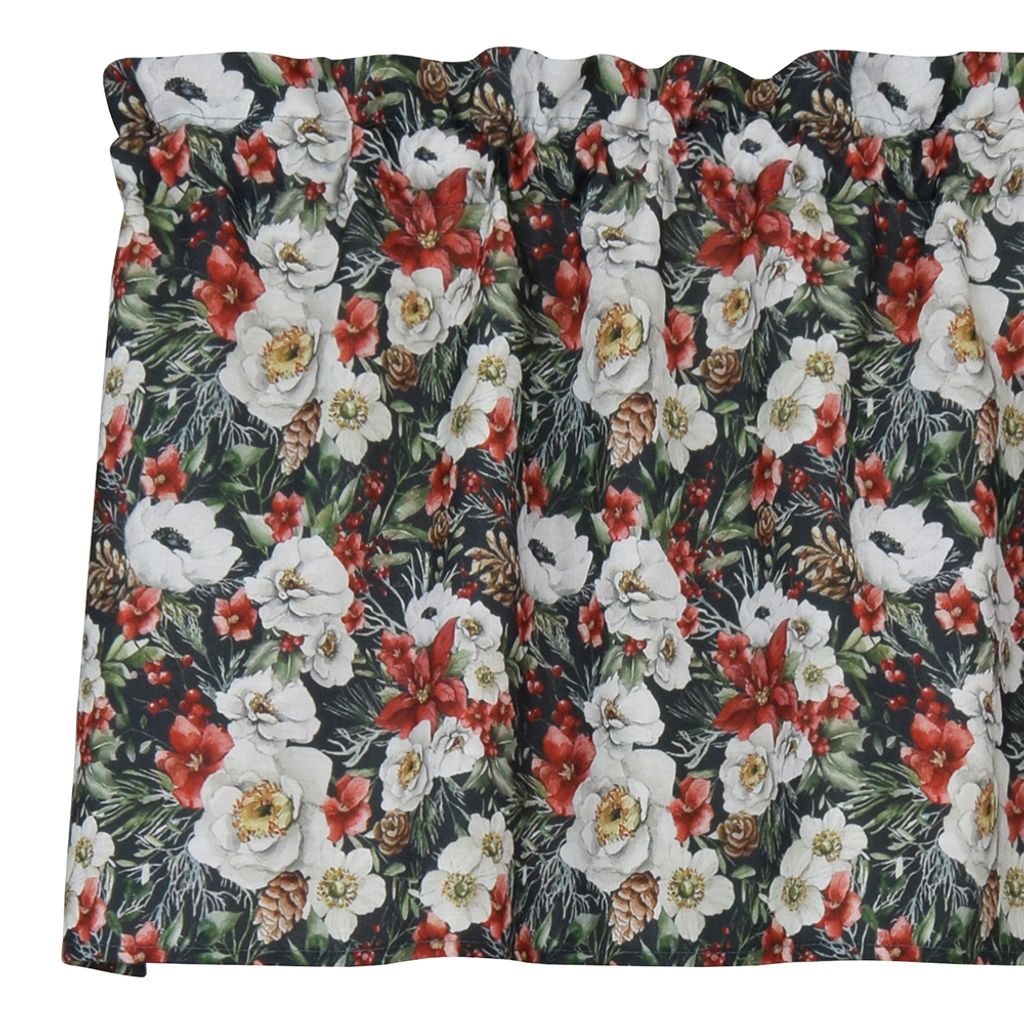Maud gardinkappa för dig som vill dekorera ditt hem med en naturlig och färgglad julkänsla. Med mönster av röda och vita blommor, tillsammans med vintergröna detaljer, kottar och bär.