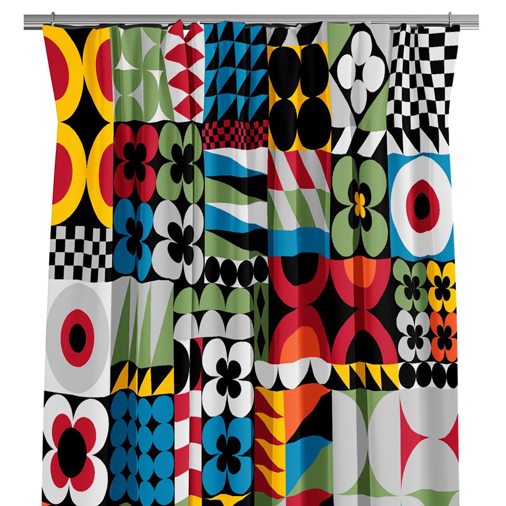Vi har tillsammans med Shalmiak tagit fram och tryckt detta coola tyget med stora rutor, blommor och grafiskt mönster.