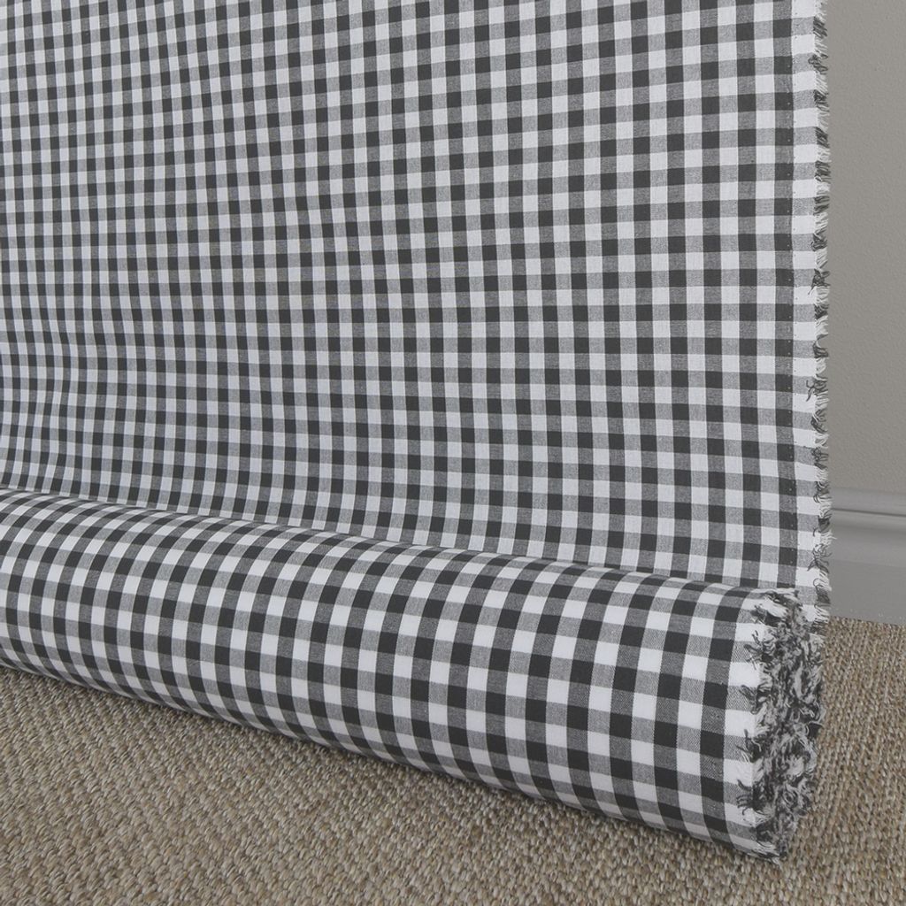 Rutigt bomullstyg i mörkgrått och offwhite som lämpar sig bra till dukar och gardiner. Rutorna är 1 x 1 cm.