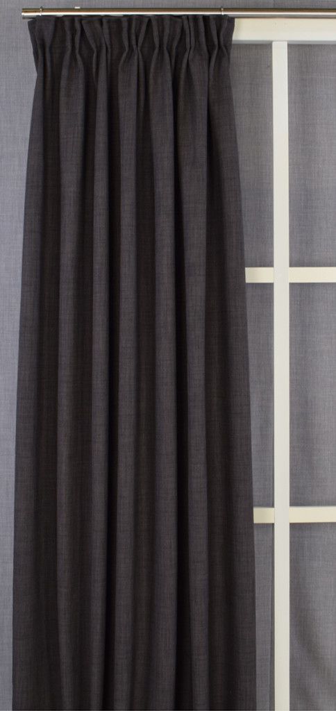 Färdigsydda mörkgråa gardiner finns i 4 olika mått.