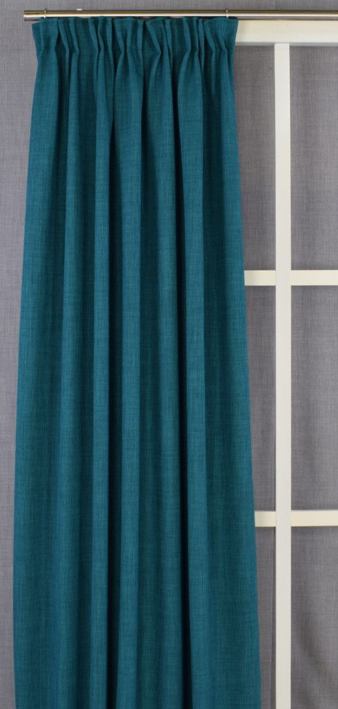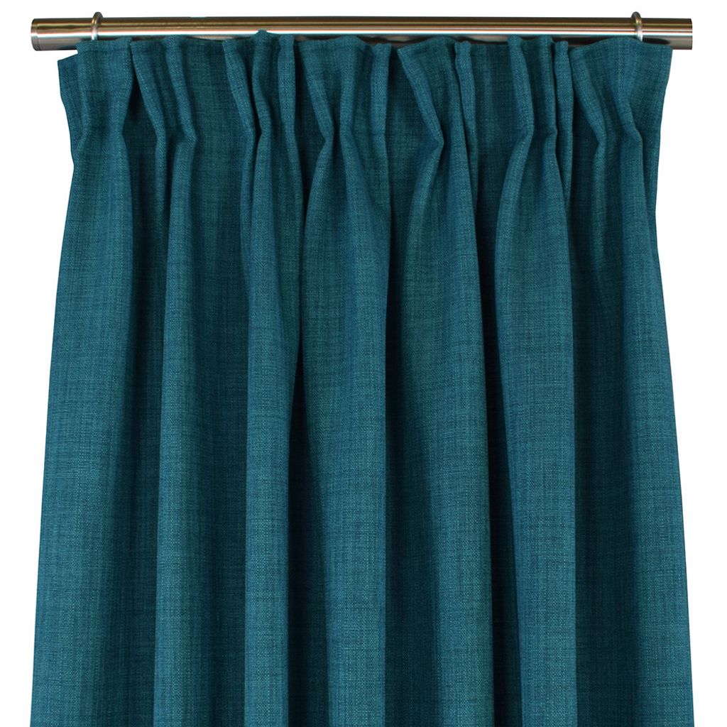 Dessa petrol gardinlängder är sydda med transparenta multifunktionella upphängningsband.