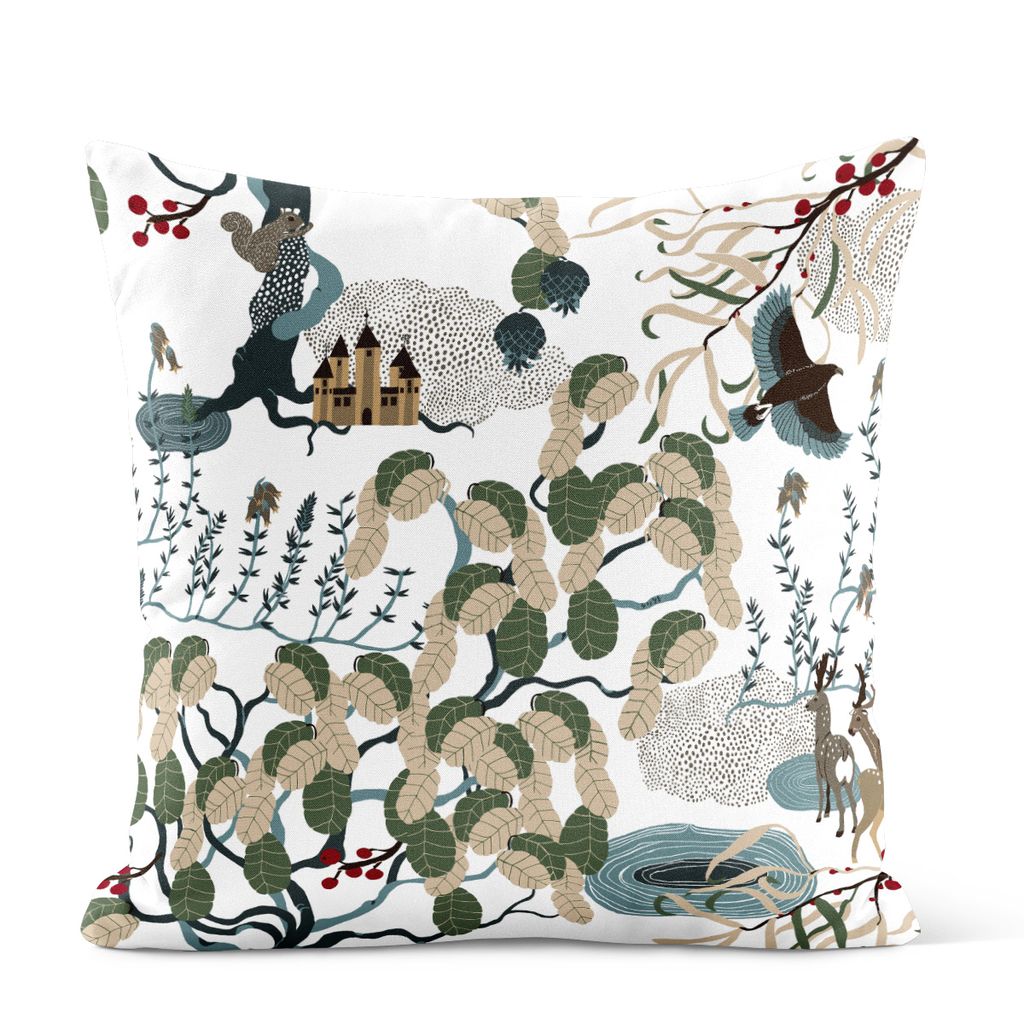 Mimers källa turkos kuddfodral tar dig med på en resa genom nordisk mytologi med sina vackra illustrationer av skog och mystiska figurer. Kuddfodralet är fyllt av detaljer som ekorrar, fåglar, och ett sagoslott, alla omgivna av bladverk i dämpade turkosa och gröna nyanser. Denna design skapar en känsla av förtrollning och naturens lugn, perfekt för dig som vill bjuda in skandinavisk mytologi och stil i ditt hem. Mimers källa kuddfodral är både ett konstverk och en hyllning till våra nordiska berättelser.
