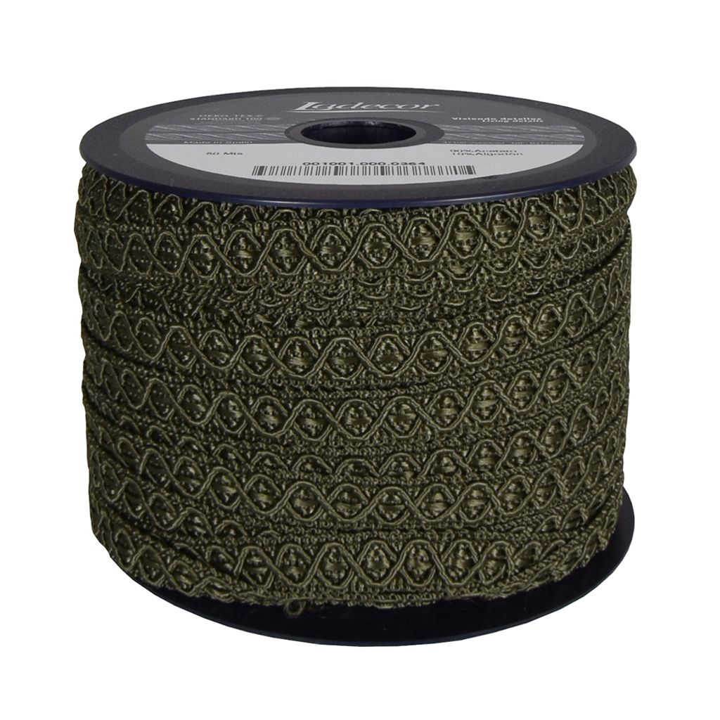 Mossgrönt tvinnat rep till möbeltapetsering.
