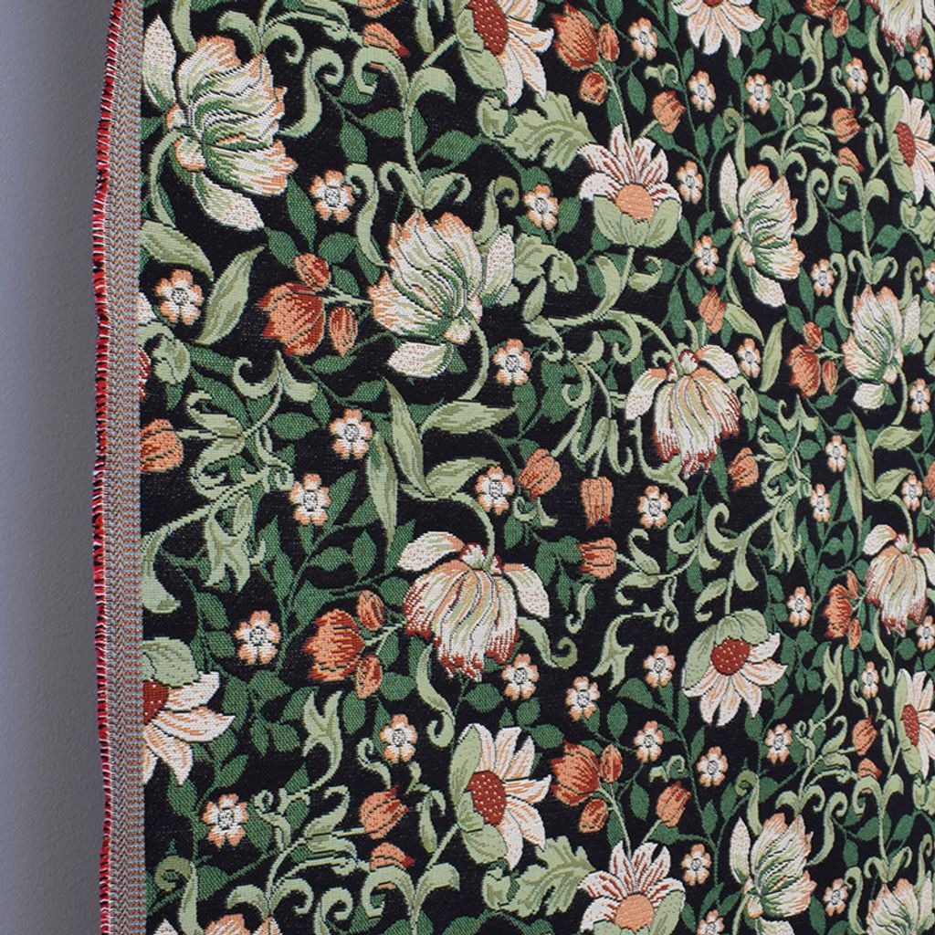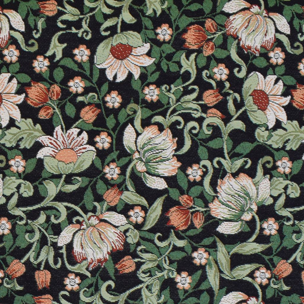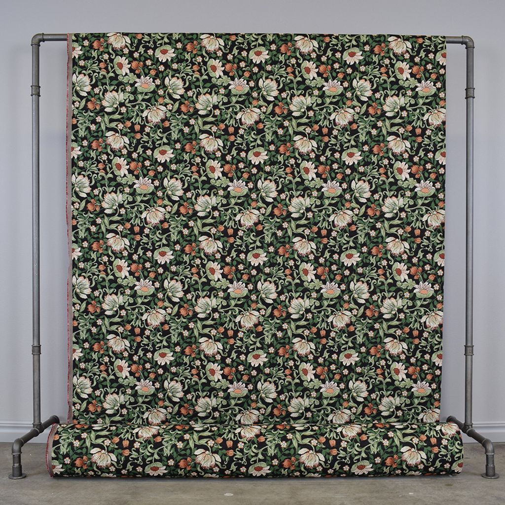 Klassiskt blomstermönster med svart botten och vackra blommor.
