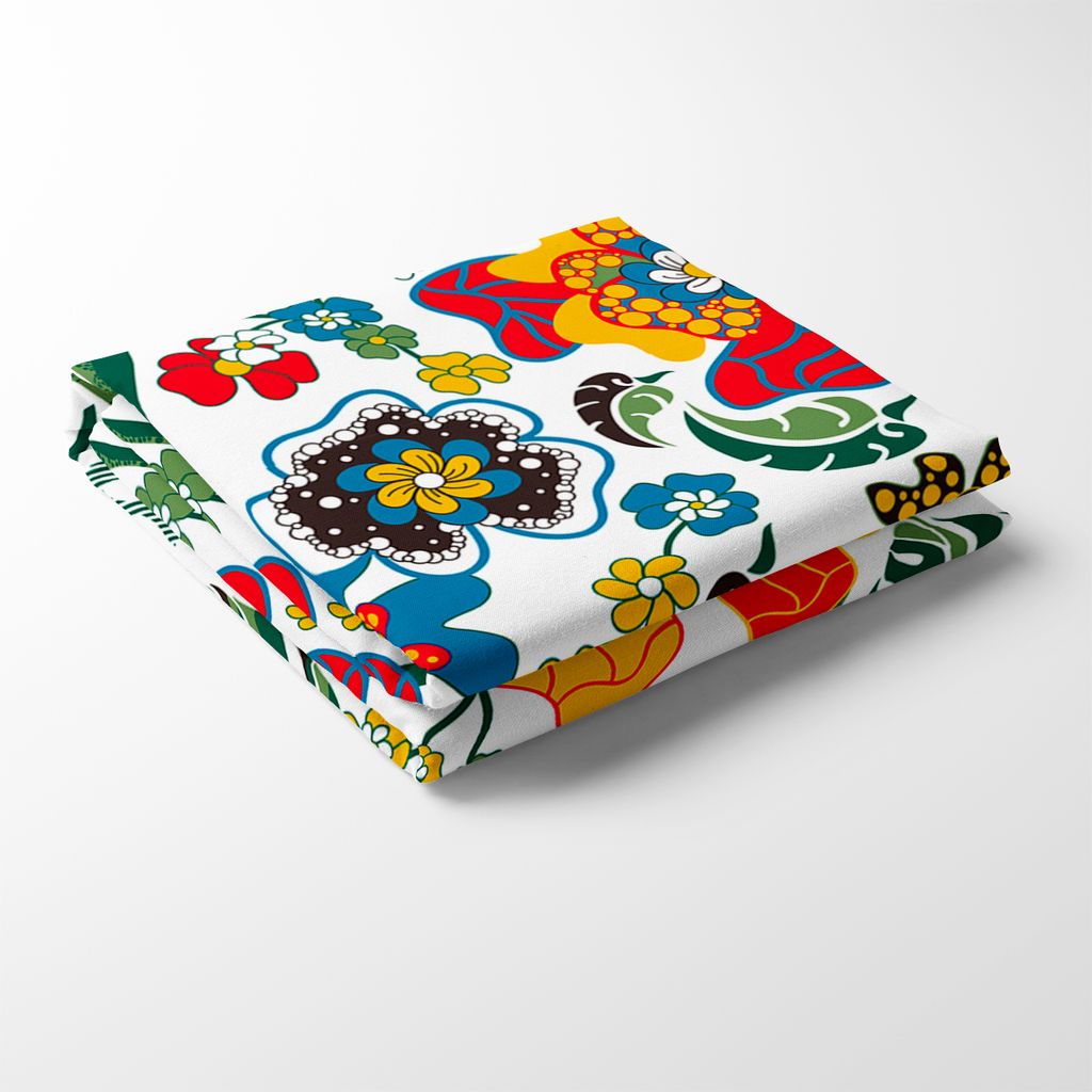 Lys upp ditt matbord med Monstera multi bordsduk, som förvandlar varje måltid till en färgstark och glad upplevelse. Denna bordsduk är tillverkad av bomull och pryds av ett livfullt blommönster inspirerat av retrodesign och den ikoniska Monstera-växten. Med sina djärva färger i blått, gult, rött och grönt blir Monstera multi en perfekt mittpunkt på både vardagsbordet och festliga tillställningar. Vi har tillsammans med Shalmiak tagit fram och tryckt detta härliga tyget.