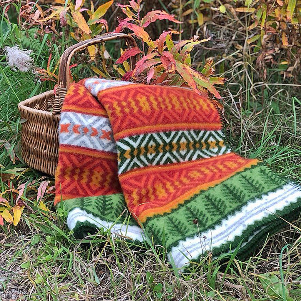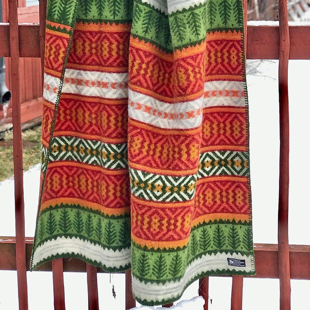 Underbart vacker Ullfilt med inspiration från Mora-dräkten och Vasaloppet.