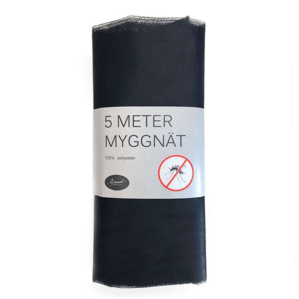 Färdigpackat svart myggnät som är 1,5 x 5 meter.