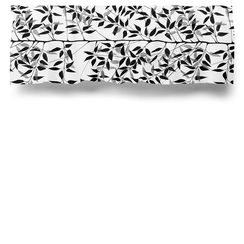 En gardinkappa med ett underbart mönster med svarta och grå grenar.