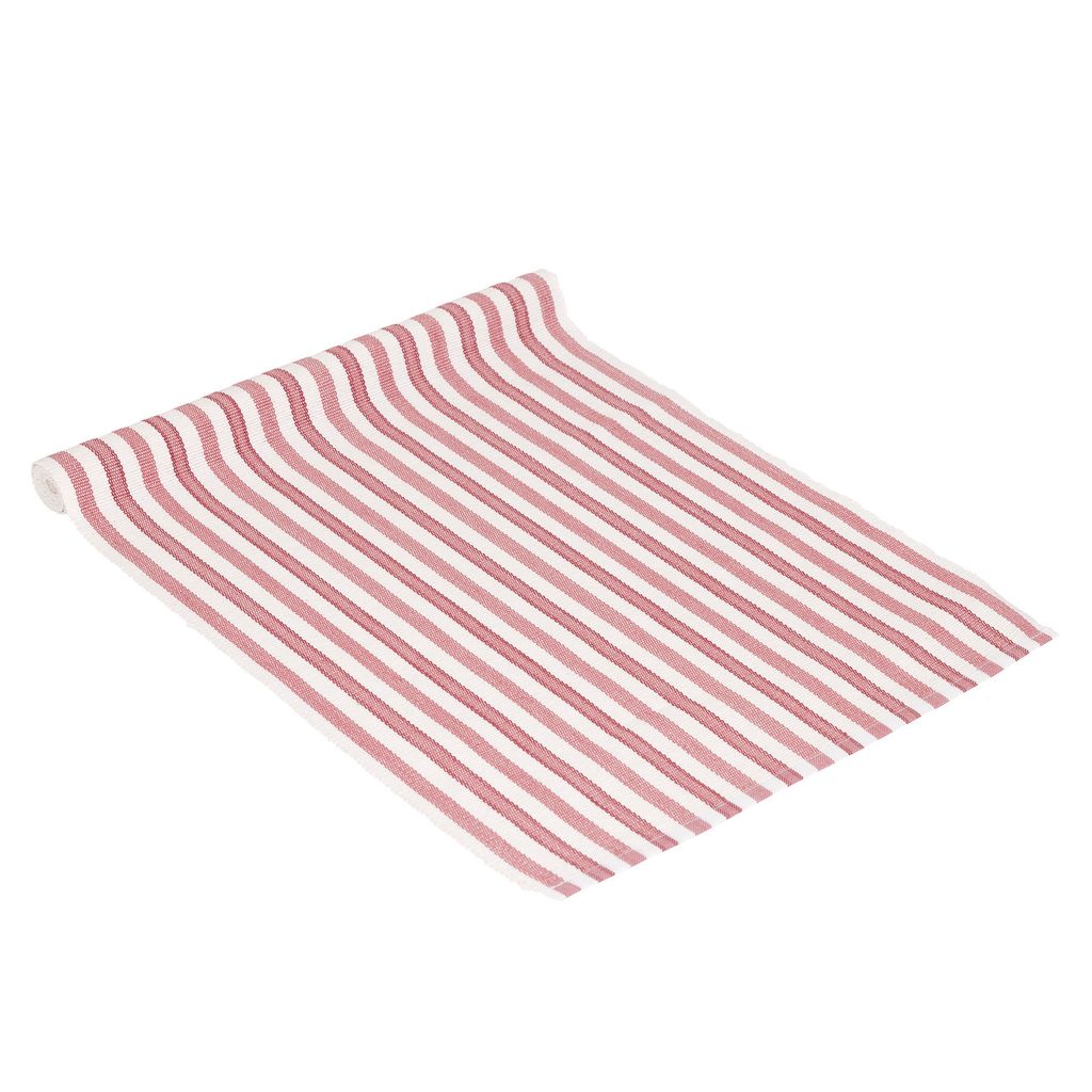 Den karakteristiska ripstrukturen ger löparen en vacker textur och en gedigen känsla, samtidigt som de tunna ränderna tillför en modern och fräsch design. Den rosa tonen skapar ett mjukt och inbjudande intryck som passar perfekt både till vardagsdukningar och festligare tillfällen.