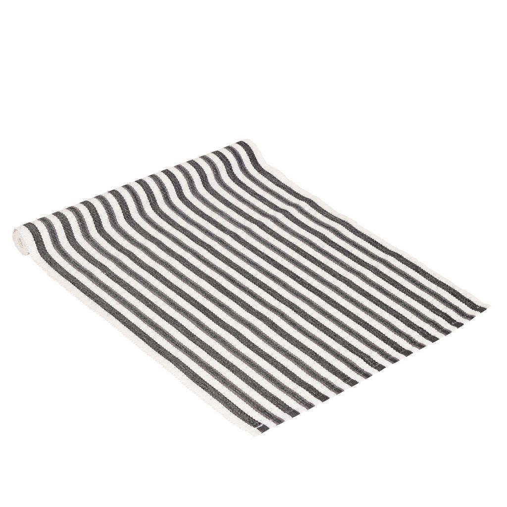Nina Svart löpare 35x120 cm är en ripslöpare i garnfärgat bomullstyg med trendiga 1 cm-ränder i klassiskt svart. En stilren kombination av modern design och tidlös elegans.